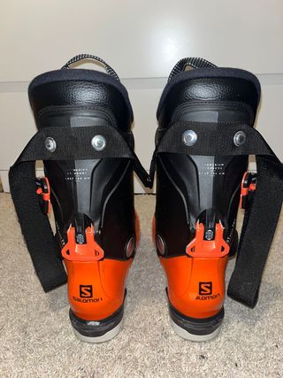 Botas de esquí Salomon en llamativos colores naranja y negro. - Cierres de hebilla ajustables. - Tirador en la parte superior para facilitar su colocación. - Diseño deportivo. Usadas 3 veces la temporada pasada