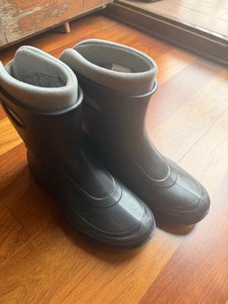 Botas de agua Quechua para niños, ideales para días de lluvia o nieve. Son cómodas y prácticas. Talla 38/39 Eu Nuevas a Estrenar Precio 10.00€ - Diseño en color gris y blanco. - Cierre de velcro para un ajuste fácil. - Interior forrado para mayor calidez. - Suela de goma antideslizante. WhatsApp 622933985