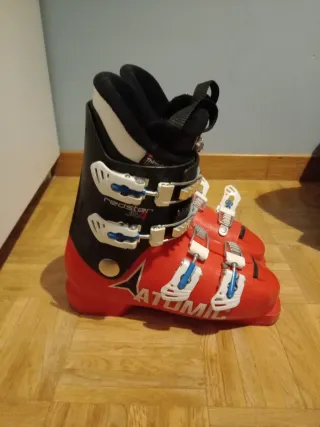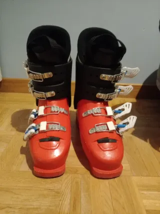 Botas de esquí en talla 25.0/25.5. - Color rojo y negro. - Cierres de hebilla.