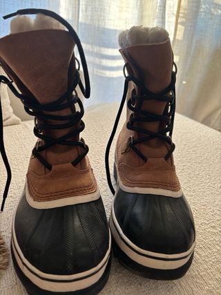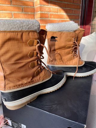 Botas de invierno Sorel con un diseño funcional y cálido. Se han usado 4 días para un viaje a Laponia. Excelentes para bajas temperaturas (-20) - Parte superior de tela resistente. - Forro interior suave y confortable. - Suela de goma excelente para nieve.