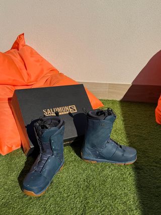 Botas de snowboard Salomon Dialogue originales, talla grande EUR 46 2⁄3 (29.5 cm), en muy buen estado y con caja original. ✔️ Sistema Quicklace (ajuste rápido y cómodo) ✔️ Suela Contagrip con buen agarre ✔️ Flex equilibrado → ideales para all-mountain ✔️ Muy cómodas, perfectas para nivel principiante o intermedio Usadas, con desgaste leve y normal en la suela Pequeñas marcas estéticas en la puntera (se ven en las fotos) Sin roturas, sin descosidos, interior cuidado Las vendo porque ya no practico snowboard. Siempre guardadas en casa y bien cuidadas. 📦 Envío por Wallapop o entrega en mano