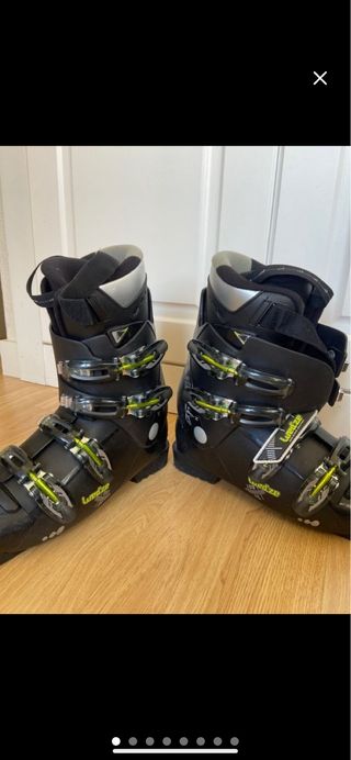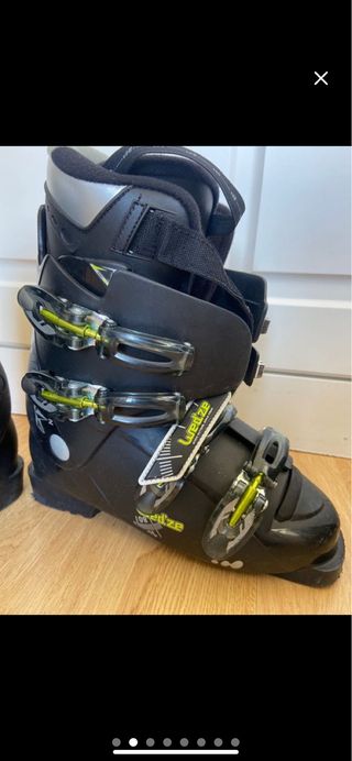 Botas de esquí Wed'ze en color negro con detalles en verde. Cuentan con cierres de hebilla ajustables. Chuliisimas botas para esquiar. Talla 38-39 aprox Negras, con cierres perfectos! Combinados con amarillo fosforito. Fácil de entrar el pie. Buena lengüeta. Buenos cierres! Aprovecha para la semana blanca del cole!!! 🎿⛷