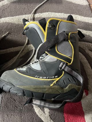 Botas de snowboard marca Freeride en talla 43. Diseñadas para ofrecer comodidad y rendimiento en la montaña. - Cierre con cordones y correas. - Exterior en materiales resistentes. - Suela con buen agarre.