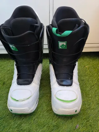 Botas de snow Burton en color blanco y verde. - Cierre rápido. - Diseño moderno y cómodo. Usadas pero en buen estado, las queda todavia mucha vida. 47