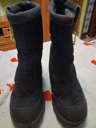 Botas de apresquí Decathlon en color negro, talla 40. Perfectas para mantener los pies calientes y secos en la nieve. Usadas 2 dias ( si llega) - Diseño acolchado. - Suela de goma antideslizante. - Cierre de cordón ajustable.