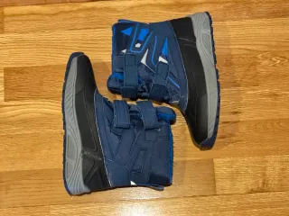 Botas de nieve para niño, perfectas para mantener los pies calientes y secos en climas fríos. Usadas solo una vez - Diseño con doble cierre de velcro para un ajuste seguro. - Interior forrado de pelo sintético para mayor calidez. - Suela de goma antideslizante para mejor tracción.