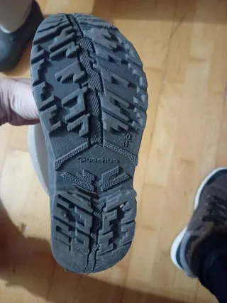 Botas de nieve Quechua para niño, ideales para mantener los pies calientes y secos en la montaña. - Color rojo y gris. - Cierre de velcro. - Suela de goma antideslizante. Hay varias tallas : 33, 32 y 34 las negras . 6 € cada par