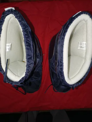 Marca: Firefly talla 38/40 Color: azul, con detalles en blanco/plateado ,usadas una vez como se puede apreciar en las fotos Tipo: Botas de nieve o après-ski Características: Cierre con cordones, diseño acolchado (puffer), y una suela gruesa de color canela o marrón claro. Uso: Están diseñadas para ofrecer comodidad y soporte en la nieve y el frío, adecuadas para actividades de invierno como el snowboard, especialmente para principiantes. - Diseño acolchado. - Cierre con cordones. - Forro interior suave.
