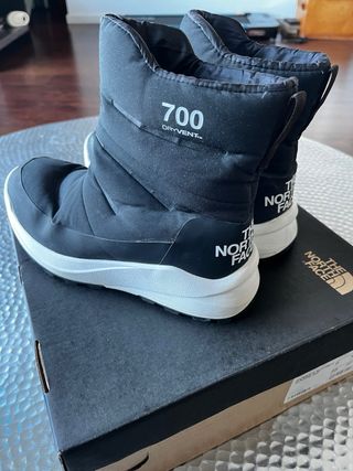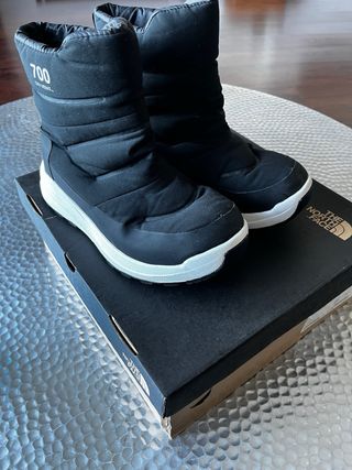 The North Face botas de nieve insuladas ideales para la montaña, super resistentes, protegen muy bien a los pies de la montaña y del frio. muy poco uso, las use unas 4 veces en Andorra. son muy guapas y comodas.