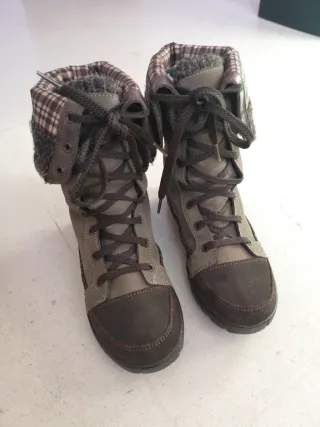 Usadas en apenas um viaje de cinco días en Finlandi, con -28⁰C. Talla 43EUR. Están limpias y con un poco de pelo de perro en su interior. Botas de senderismo diseñadas para mantener tus pies calientes e impermeables en la nieve. Perfectas para actividades al aire libre en climas fríos. - Suela con buen agarre. - Cierre de cordones. - Interior forrado para mayor calidez.