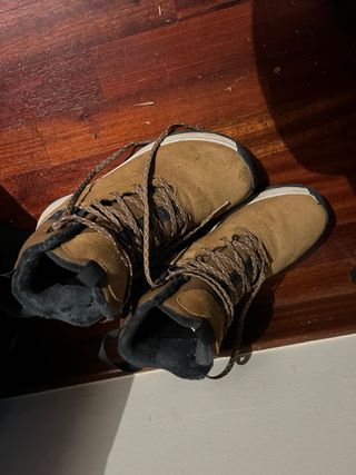 Descansos Quechua para niño en talla 37. Perfectas para nieve y actividades al aire libre. Como nuevas. 3 usos - Color marrón. - Interior forrado para mayor calidez. - Cierre con cordones.