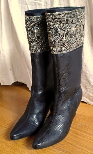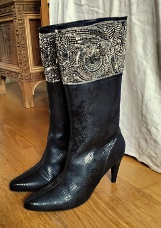 botas piel serpiente negro y gris oscuro con pedreria, Farrutx, nº38, en perfecto estado, utilizadas 1 vez