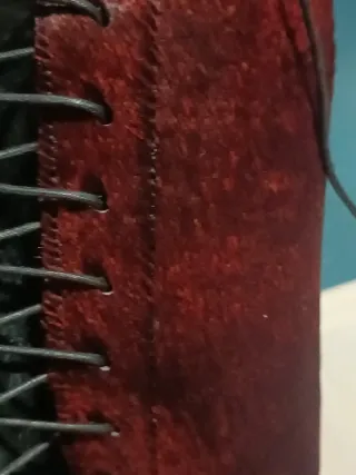 Botines de estilo acordonado con detalles metálicos. le falta algun trozo de goma embellecedora en algun costado pero el botin no esta roto ni entra agua. - Material exterior de ante. - Cierre de cordones. - Tacón corrido cuña 8,5 de goma prensado