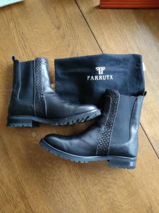 Botas Farrutx piel en negro em nuy buen estado, usadas 5 o 6 veces. Son muy tiernas por lo que se hacen muy comodas. Su precio original fue 200, te duraran toda la vida