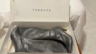 Par de botas guantes grises de piel y de la marca Farrutx (originales). Se Están sin usar. Son un 39 pero creo que talla pequeño tirando a 38. De punta a talón la suela mide 26 cm.