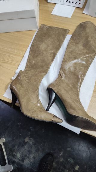 Elegantes botas altas de piel. Altura tacón 10cm. Entrega en persona - Material: Piel. - Diseño con fruncido y detalle de bolitas en la caña.