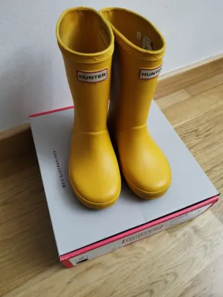 Botas de agua para niñ@s de la marca Hunter. - Color amarillo. - Diseño clásico de botas de agua. - Ideales para días lluviosos. - Talla 26. - Hunter originales con su caja.