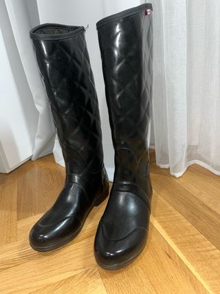 Botas altas de la marca Hunter en color negro.Como nuevas. - Diseño clásico. - Acabado mate.