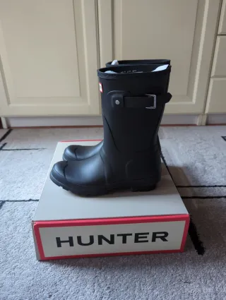 Botas de agua Hunter en color negro. Perfectas para días lluviosos.Puestas una unica vez. - Diseño clásico. - Hebilla lateral ajustable.