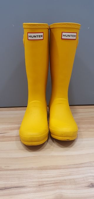 Botas de agua para niñ@s de la marca Hunter. - Color amarillo. - Diseño clásico de botas de agua. - Ideales para días lluviosos. - Talla 26. - Hunter originales con su caja.