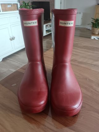 Botas de agua Hunter para niñes, talla 31, en color rojo. Están en buen estado, con algunas señales normales de uso. - Son dos botas. - Ideales para días lluviosos.