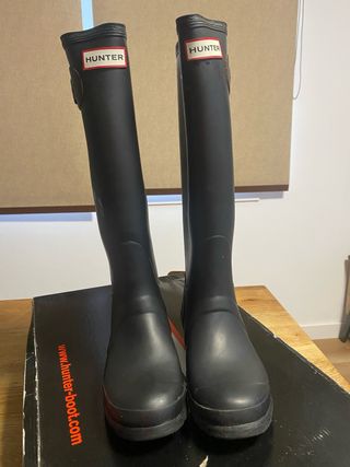 Botas de agua altas de la marca Hunter en color negro. - Talla 37. - Diseño clásico y funcional. - Material de goma resistente.