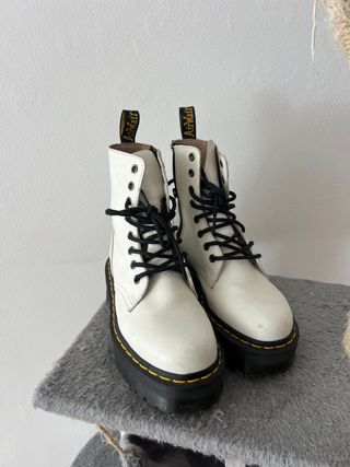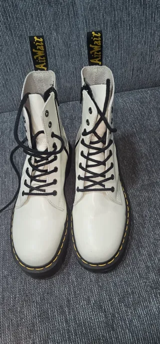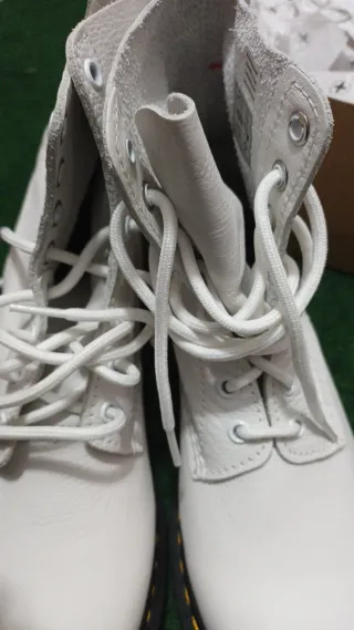 Botas de estilo icónico con un diseño moderno. son el modelo plataforma, las he usado una sola vez me encantan pero no me termino de ver con botas blancas 😓 - Cierre de cordones y cremallera - Tirador trasero para facilitar su colocación. - Suela gruesa y resistente.