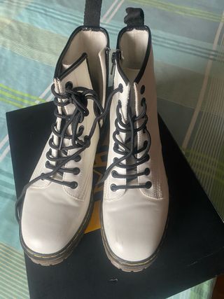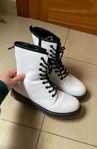 Botas estilo Dr. Martens en color blanco. Un clásico que combina con todo. - Cierre con cordones negros. - Detalle de tira en el talón. - Suela negra gruesa. Sin estrenar.