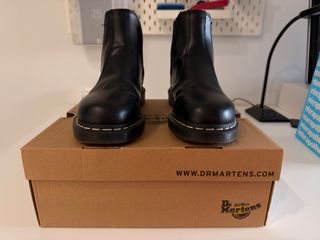Botas Chelsea de cuero negro de Dr. Martens, modelo 2976. - Diseño clásico Chelsea. - Costuras blancas distintivas en la suela. - Material de cuero. - Caña alta.