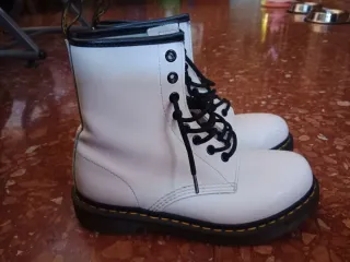 Botas estilo Dr. Martens en color blanco, talla 39.Perfectas para un look urbano y moderno. - Material exterior sintético. - Cierre con cordones y cremallera lateral. - Suela de goma.