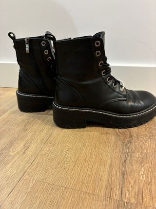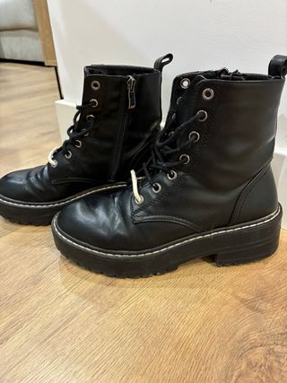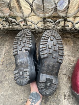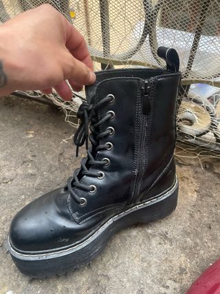 Botas negras con plataforma en buen estado. - Cierre de cordones y cremallera lateral. - Detalle de costura blanca en la suela. - Diseño tipo Dr. Martens.