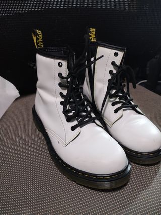 Botas de la marca Dr. Martens en color blanco. fue un regalo, error en la talla, usadas en casa solo por la talla. Alguna marca minima de doblez en la puntera por probarlas. - Talla 36. - Suela con el clásico diseño de la marca.
