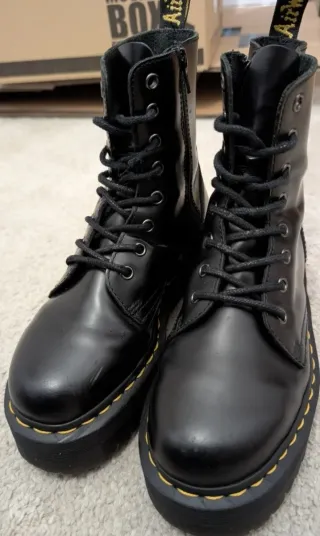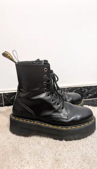 ¡Oportunidad única! Vendo Dr. Martens modelo Jadon originales. Están totalmente nuevas, a estrenar y se entregan en su caja original (ver fotos de etiquetas y suelas). Son el modelo icónico de piel Polished Smooth en color negro con la famosa plataforma Quad de 4 cm que estiliza cualquier look. Incluyen cremallera lateral para mayor comodidad y los clásicos pespuntes amarillos. Talla 39 EU (UK 6). Las vendo por debajo de su precio en tienda (230€) porque necesito el dinero rápido. No acepto cambios, solo gente seria. ¡Póntelas tú primero! #DrMartens #Jadon #Plataforma #Botas #Moda #DrMartens39 #Original #Nuevas #Shoes #Platform