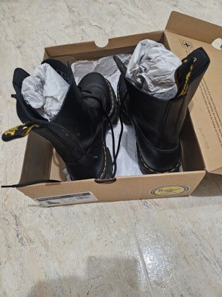 Botas tipo Chelsea Dr. Martens. Puestas una vez, las compré por internet y no me van bien. No son originales, pero están muy bien. - Diseño Chelsea con elásticos laterales. - Plataforma gruesa y suela con pespunte amarillo característico. - Tirador trasero para facilitar su colocación.