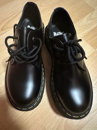 Botas Dr. Martens con plataforma, casi nuevas, usadas solo una vez. El cuero y la suela están en perfecto estado. Modelo clásico, talla 38. Se entregan exactamente tal como aparecen en las fotos.
