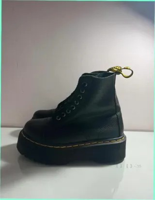 Botas negras con plataforma en buen estado. - Cierre de cordones y cremallera lateral. - Detalle de costura blanca en la suela. - Diseño tipo Dr. Martens.