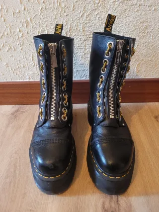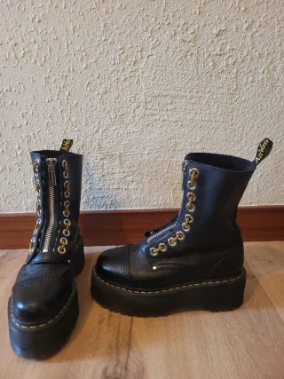 Vendo las Botas Dr. Martens modelo Sinclair HI Max. - Diseño de caña alta. - Cierre con cremallera frontal. - Ojales metálicos con cordones. - Plataforma gruesa. - Tirador trasero con logo. Están en perfecto estado, solo un pequeño rasguño en la punta de una bota (ver imágenes). Se han usado solo 3 veces, están prácticamente nuevas. Importante:¡Tallan grande! La usuaria habitual usa una talla 40, en estas botas la 39, asique tenerlo en cuenta para su comodidad. Contacta conmigo para más información, el envío está disponible.