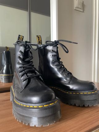 Botas de plataforma Jadon Max de Dr Martens. Muy buen estado, no las he usado demasiado porque me están un poco pequeñas. Tengo su caja y los cordones con los que venían que son como amarillos y negros, estos venían también con ellas.