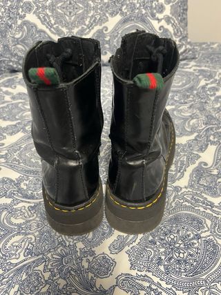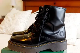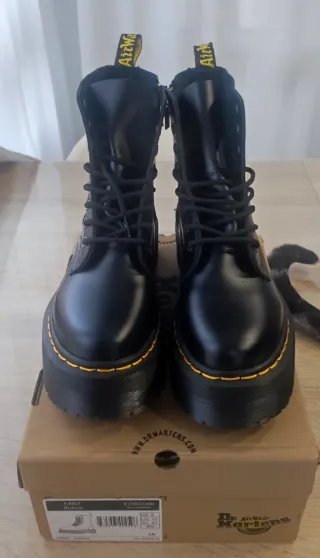 Botas de plataforma estilo Dr. Martens. ¡¡¡NO SON ORIGINALES!!! Indican talla 41, pero yo utilizo un 39,5 y me quedan pequeñas. Por eso pongo que son talla 39. Están completamente nuevas, no las pude devolver y por eso las vendo. ¡Si tienes alguna pregunta, no dudes en escribirme!