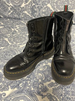 Botas estilo Dr. Martens en color negro. NO son verdaderas. Las vendo porque no las uso. Diseño con cremallera frontal y suela de plataforma. - Material exterior con textura. - Tiradores traseros con logo. - Ojales metálicos para cordones.
