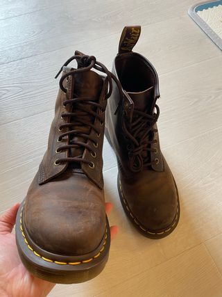 Se venden botas Dr. Martens originales modelo WarmWair en talla 43. Están en muy buen estado, con la clásica suela AirWair, pespunte amarillo y forro interior cálido para invierno. Perfectas para looks urbanos o alternativos y para los días fríos. Precio: 60 €. Entrega en mano en Bilbao o Lemona.