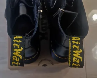 Se venden porque aunque son talla 40, tallan muy justas y realmente son para alguien que calce un 39. • Diseño clásico de 8 ojales. • Cremallera lateral, muy cómodas de poner y quitar. • Cordones con patrón amarillo. • Suela AirWair con pespunte amarillo. • Estilo moderno, más cómodo que el clásico tradicional. Ideales si buscas unas Martens con el estilo de siempre pero más prácticas y actuales.