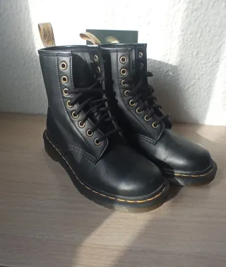 Botas icónicas de la marca Dr. Martens, modelo 1460. - Diseño clásico. - Suela con tecnología AirWair. - Los bordes están desgastados como se puede ver en la foto. - No tiene plantillas. - Solo un pequeño rayón en la punta