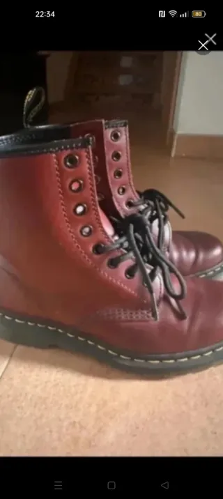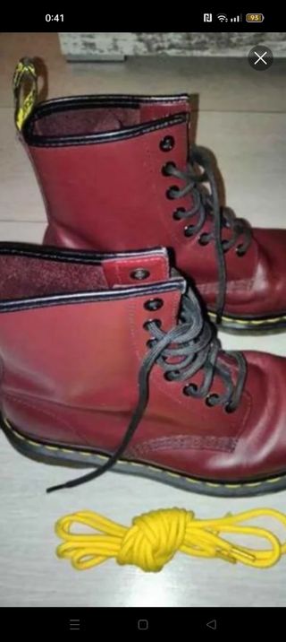 Botas estilo militar dr martens Talla 38 Usadas 2 veces, como nuevas Color burdeos Se entrega sin la caja. Cordones amarillos originales incluidos Costaron 200€