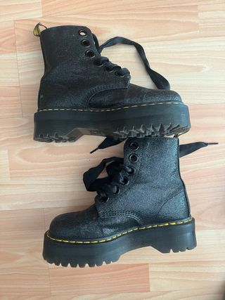 Botas Dr. Martens con un diseño especial y detalles brillantes. - Acabado con purpurina. - Cierre con cordones y lazo de cinta. - Suela de plataforma gruesa.