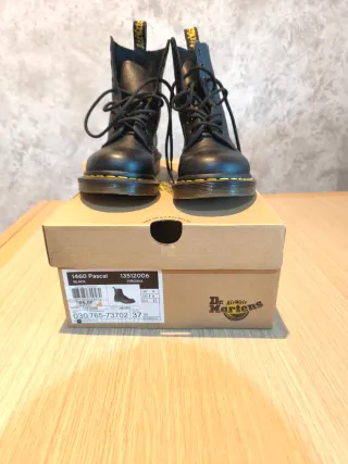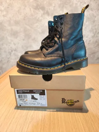 Botas Dr. Martens modelo Pascal 1460 en color negro. Son el modelo clásico de 8 ojales. - Material: Piel Virginia. - Suela: Goodyear Welt. - Color: Negro. - Talla: 37 EU (4 UK, 6 US).