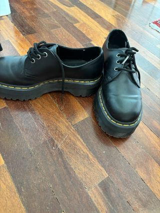 Botas Dr. Martens 1461, talla 42, de color negro. Están en buen estado, con ligeras señales de uso. - Suela con plataforma. - Cordones negros.