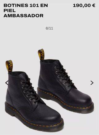 Botas Dr. Martens modelo 101 en piel Ambassador. - Piel de alta calidad. - Diseño clásico de 6 ojales. - Suela con tecnología AirWair.