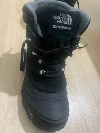 Botas de la marca The North Face en color negro con detalles blancos. Perfectas para el frío. - usadas 2 ratos 2 días - Diseño de caña alta. - Cordones blancos y negros. - Suela de goma blanca.