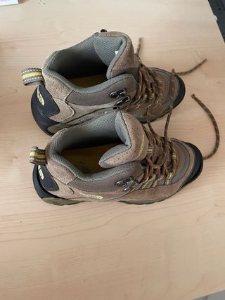 Botas de piel The North Face. Membrana impermeable Hydroseal y membrana térmica Primaloft. La piel está en excelente estado. Algún desgaste en suelas, pero aún están para caminar mucho. En el interior de los talones he puesto unas taloneras adhesivas porque se había roto algo la tela. Tallan amplio (plantillas 26,5 cm.)